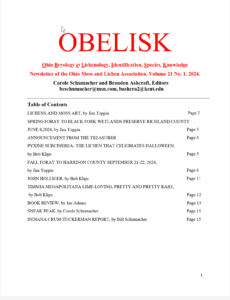 Washington County, Ohio. September-October 2006. (Lichen list from Obelisk, Vol. 3, P. 4. Bryophyte list from herbarium and collectors’ records)